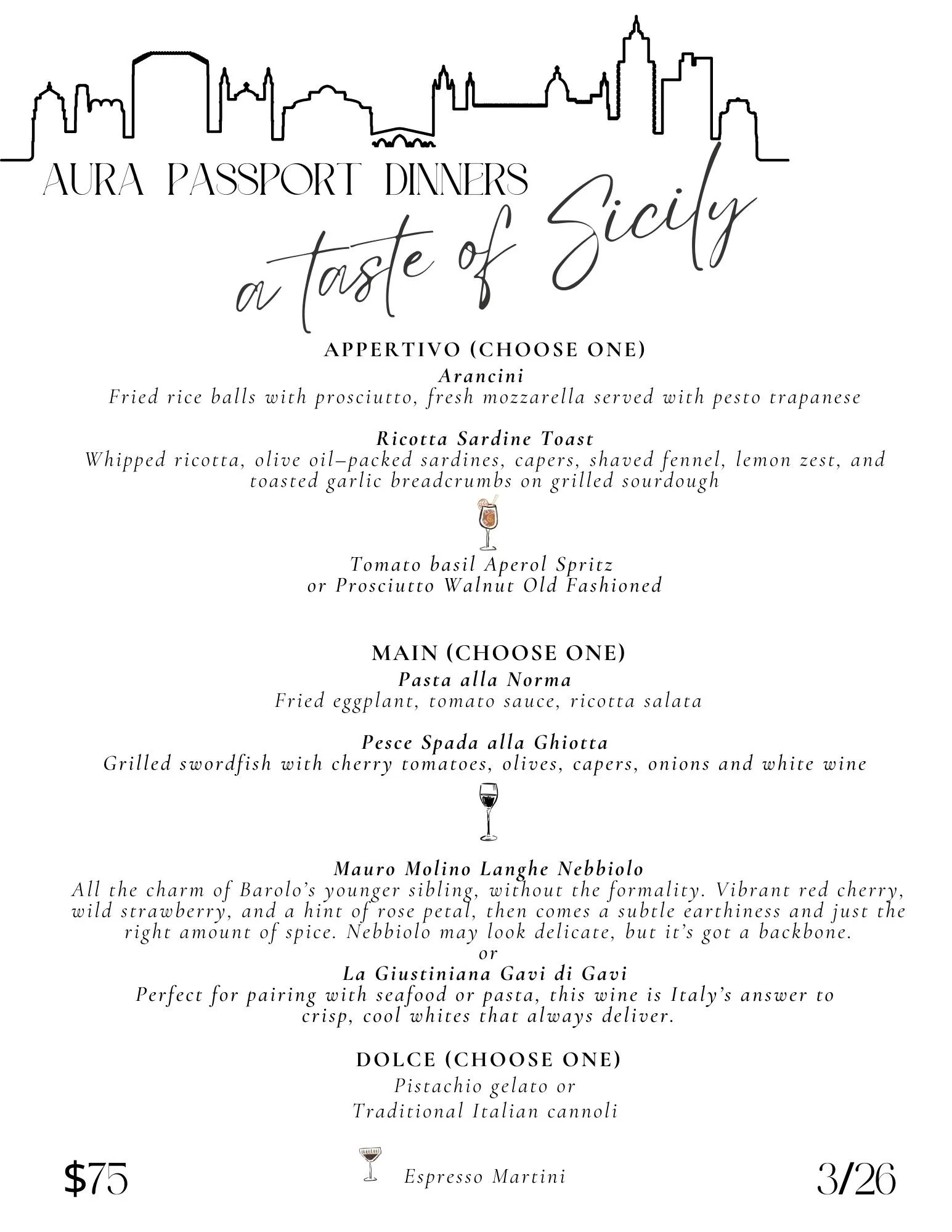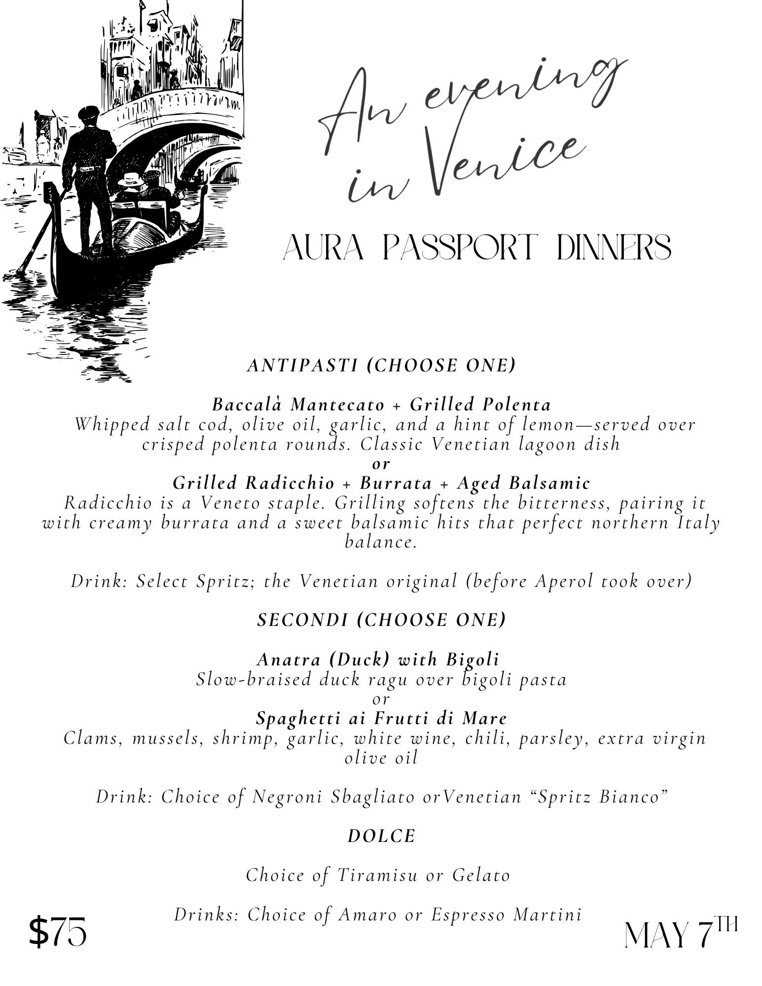 On 12/18, Aura invites you to experience A Taste of Rome, our next stop in the Passport Dinner series.
